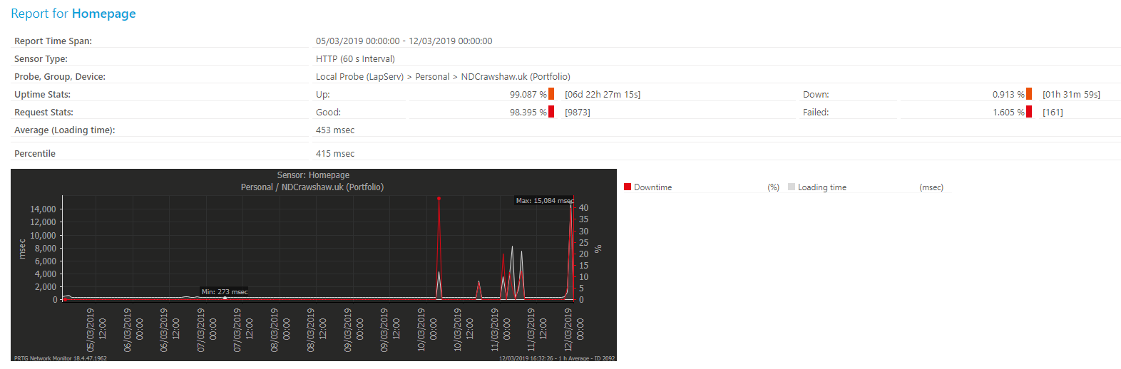Over the last week, I had the first un-planned outage on my portfolio in over a year, though it was quite a substantial outage, with about an hour and a half where the website was completely unreachable and the same again with it not responding correctly.